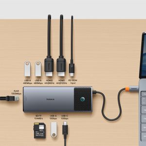10w1 HUB Adapter USB-C do HDMI / USB-A / USB-C / RJ45 / SD / TF / USB-C PD szary to niezastąpiony dodatek dla Twojego laptopa lub smartfona, umożliwiający rozszerzenie możliwości podłączenia różnych urządzeń.
